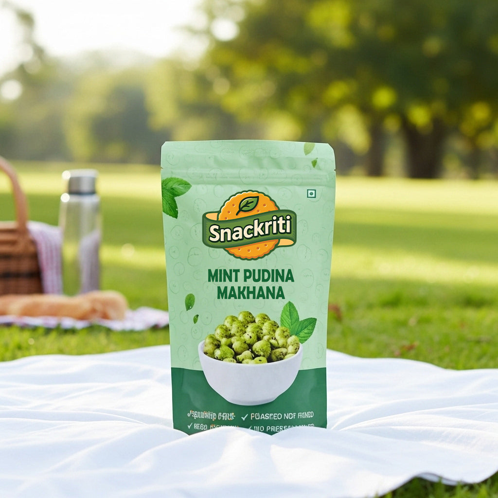 - Experience a burst of freshness with Snackriti Mint Pudina Makhana, made from premium popped lotus seeds coated with natural mint seasoning.
