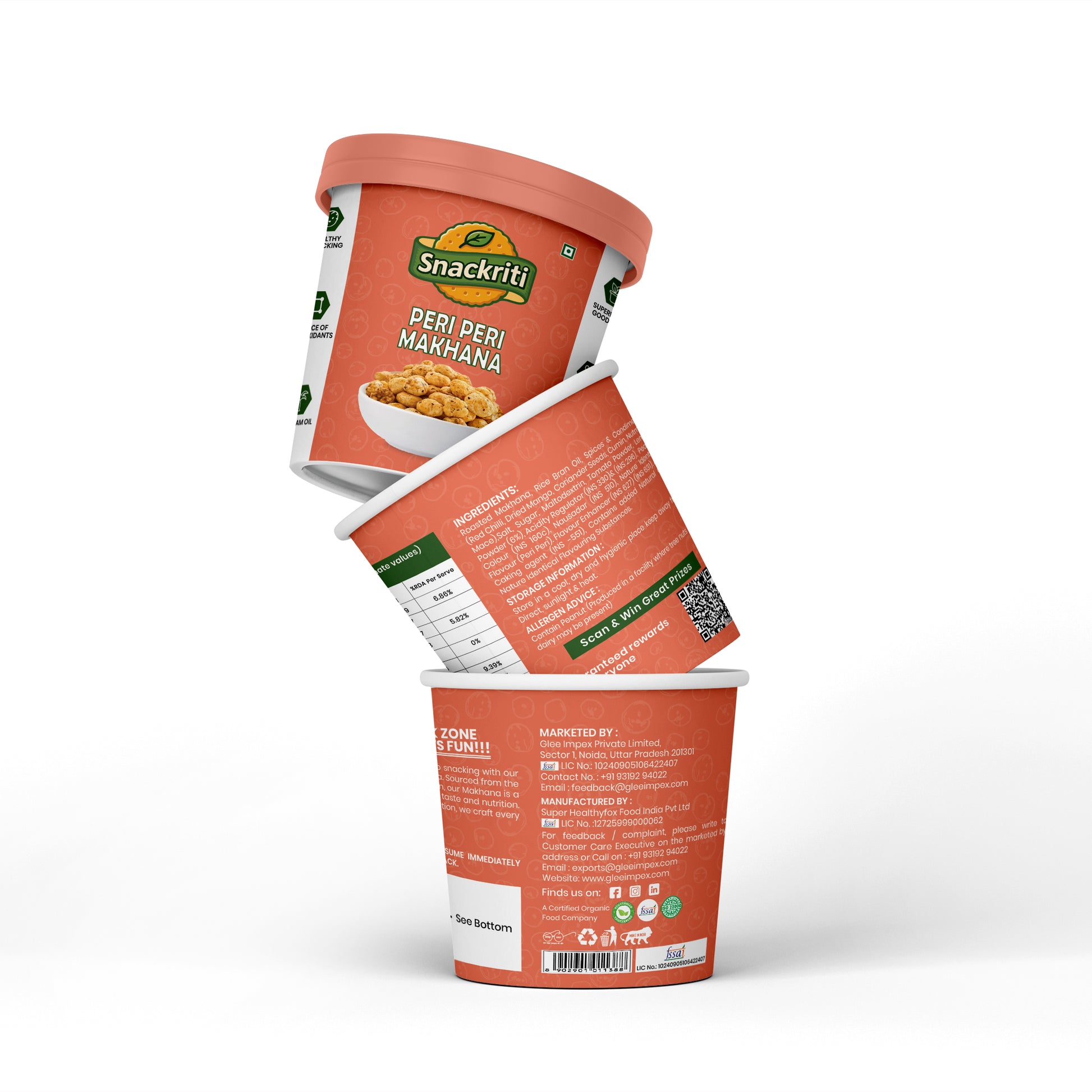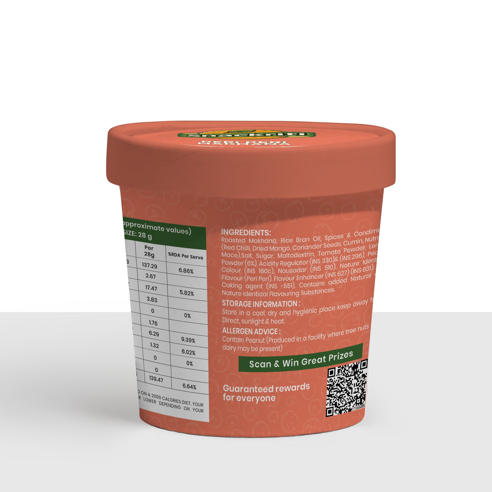 - Turn up the heat with Snackriti Peri Peri Makhana, made from premium popped lotus seeds roasted to perfection and coated with a fiery peri peri spice blend.