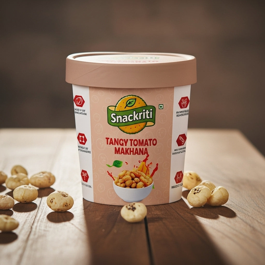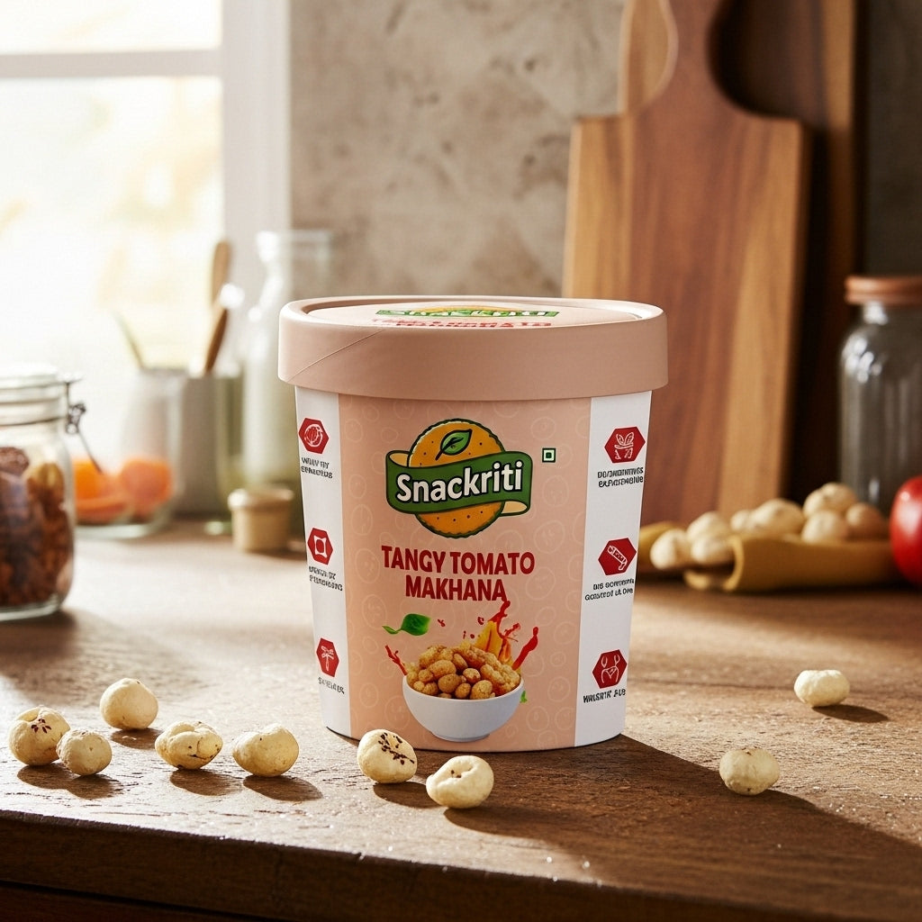 - Experience the irresistible flavor of Snackriti Tangy Tomato Makhana, made from premium roasted lotus seeds coated with a delicious blend of tangy tomato, onion, garlic, and Indian spices.