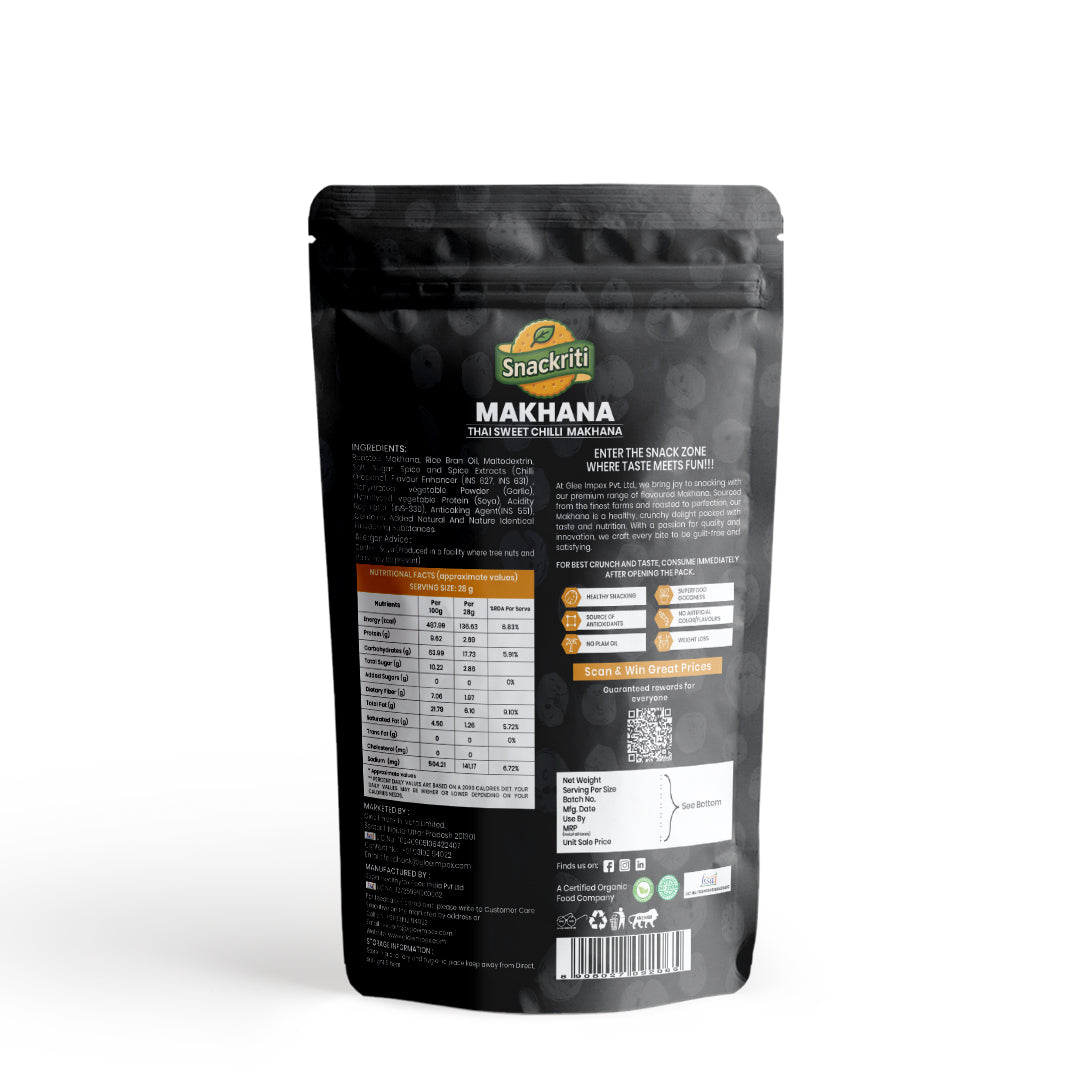- Add a flavorful twist to your snacking with Snackriti Thai Sweet Chilli Makhana, made from premium popped lotus seeds coated in a healthy sweet-and-spicy Thai chilli seasoning.